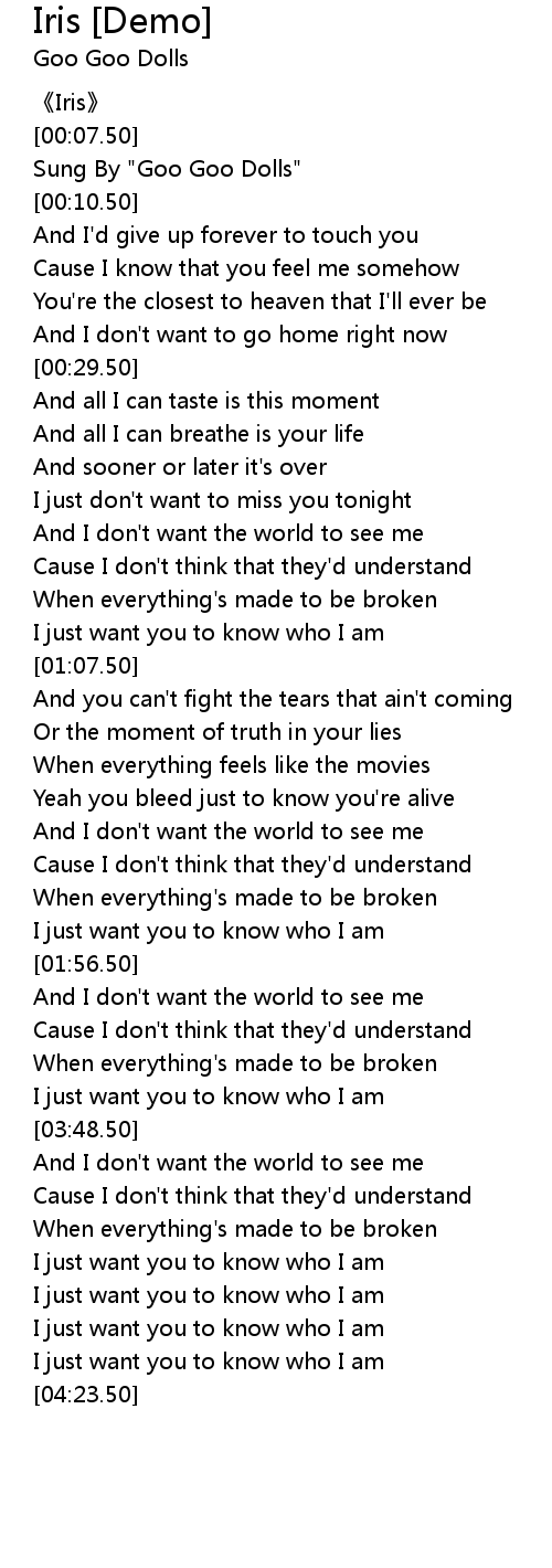 | [00:08.50] | Sung By " Goo Goo Dolls" |