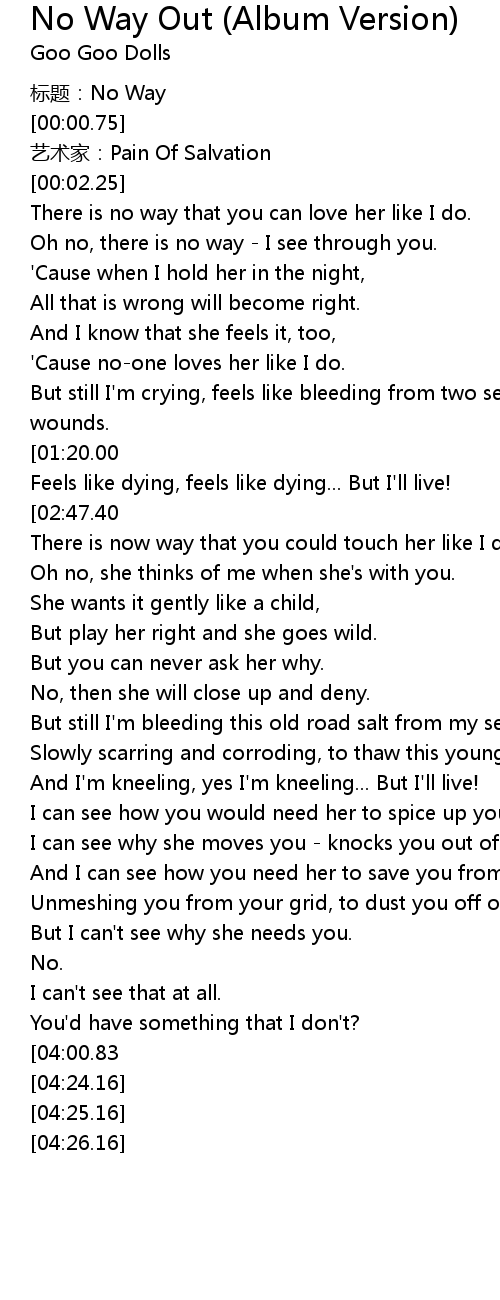 | [00:00.00] | biāo tí: No Way |