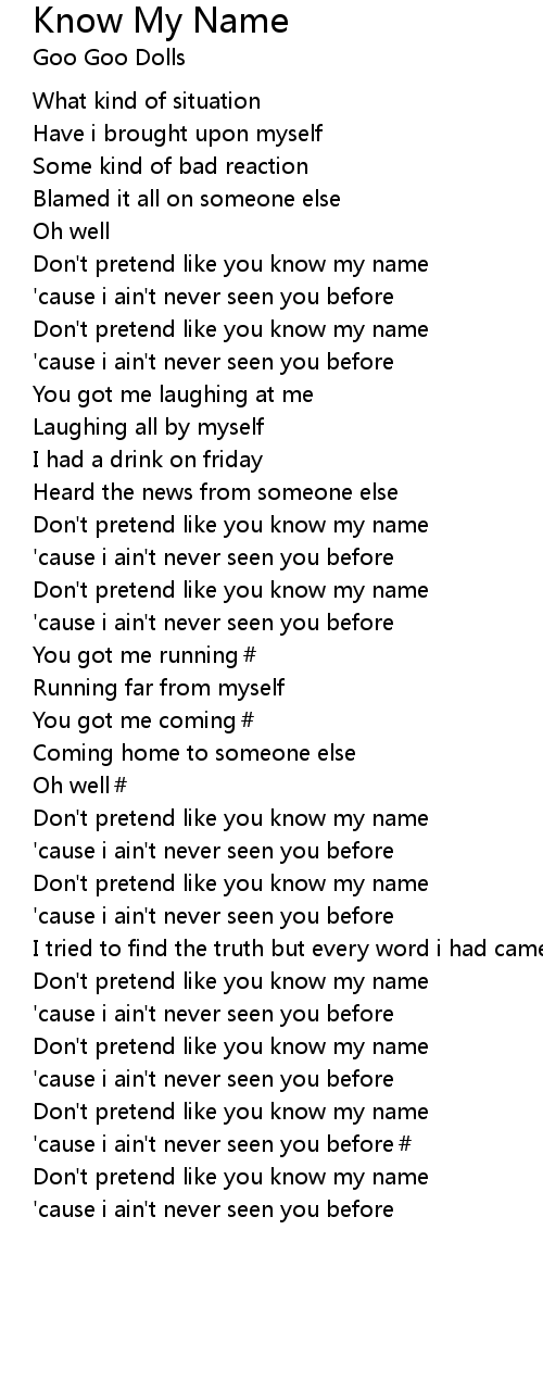 | Don' t pretend like you know my name | |