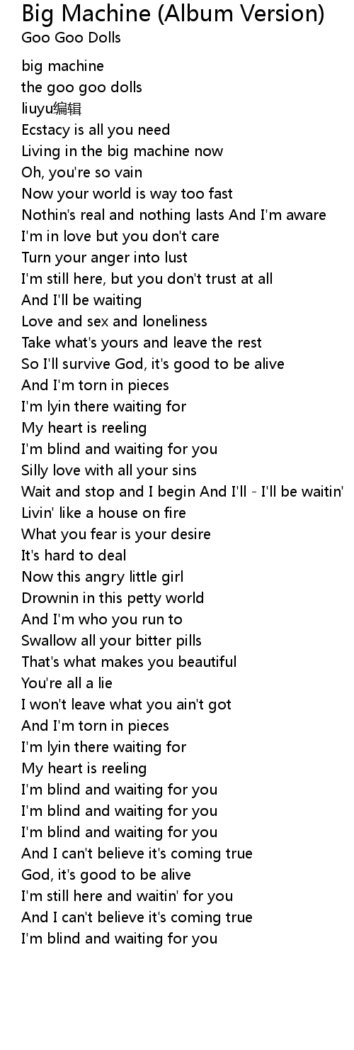 | [00:19.75] | Living in the big machine now |