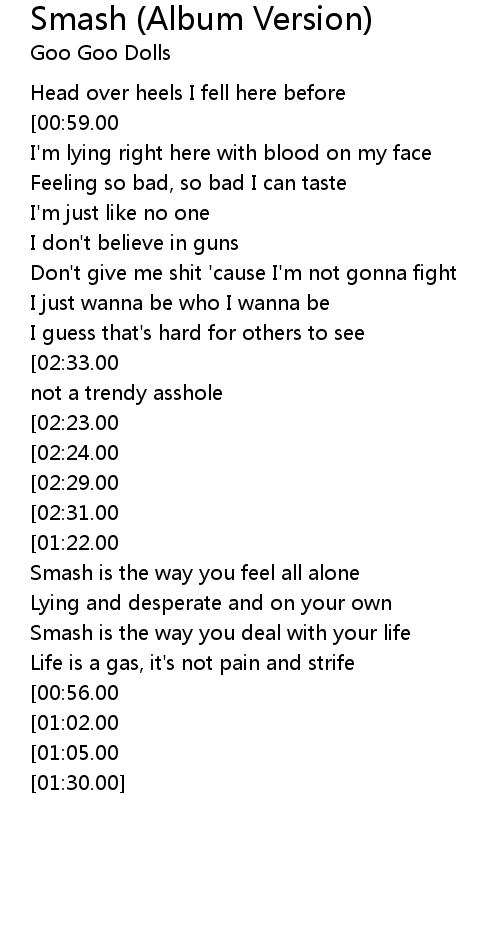Smash is the way you feel all alone |