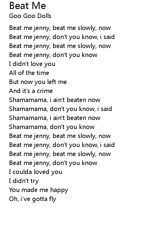 Beat me jenny, don't you know |