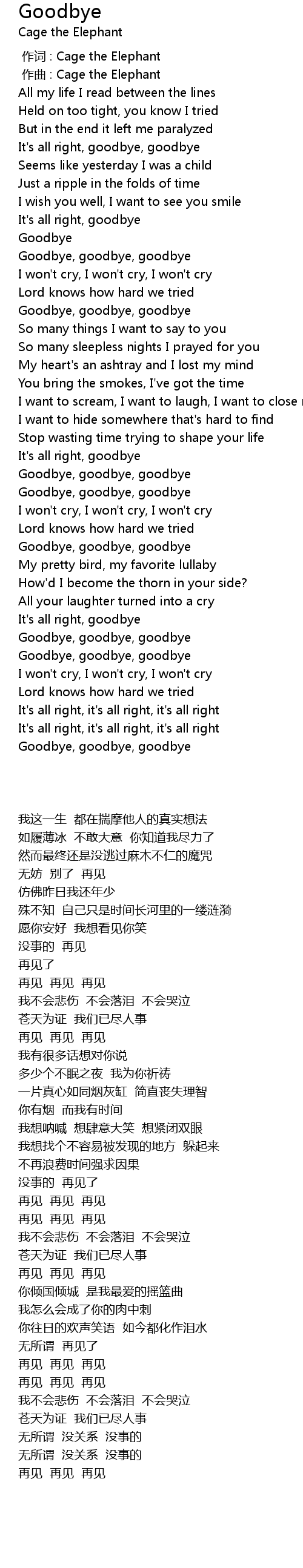 | [00:39.29] | It' s all right, goodbye, goodbye |