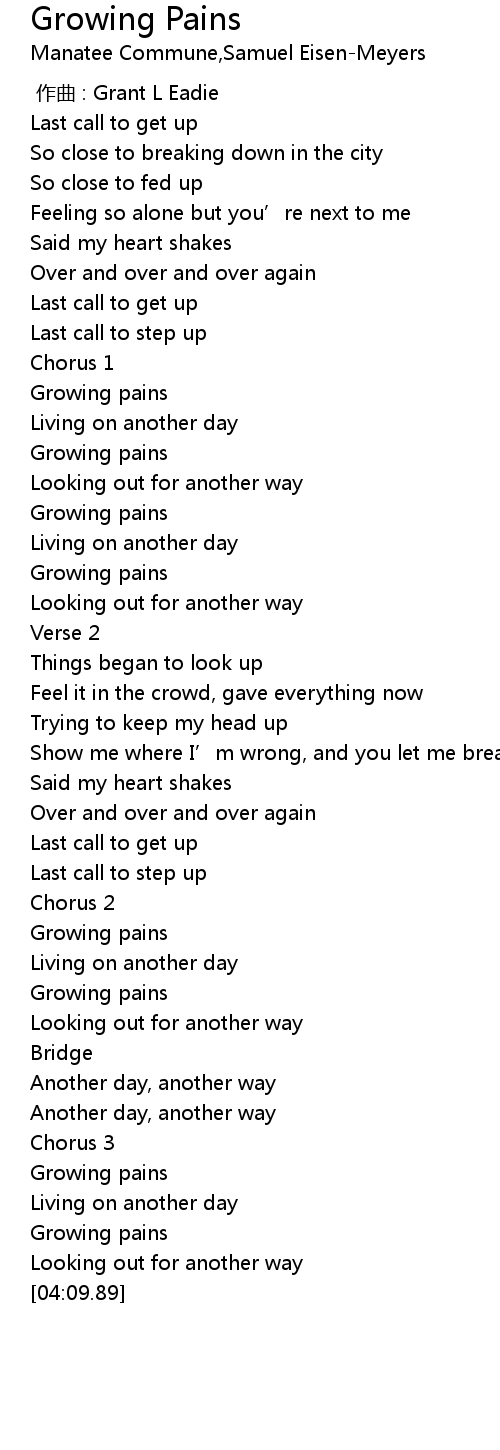 | [01:02.93] | Growing pains |