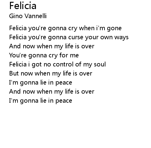 | Felicia you're gonna cry when i'm gone | |