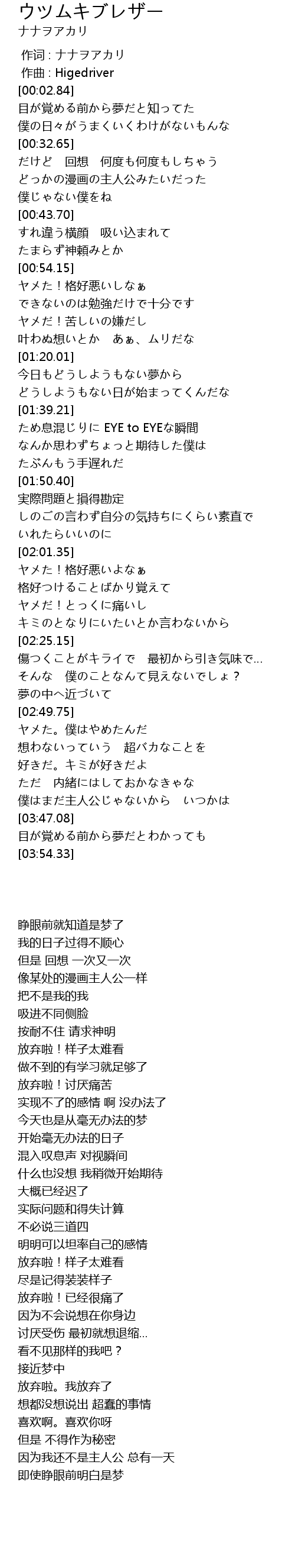 | [00:00.000] | 作词 : ナナヲアカリ |