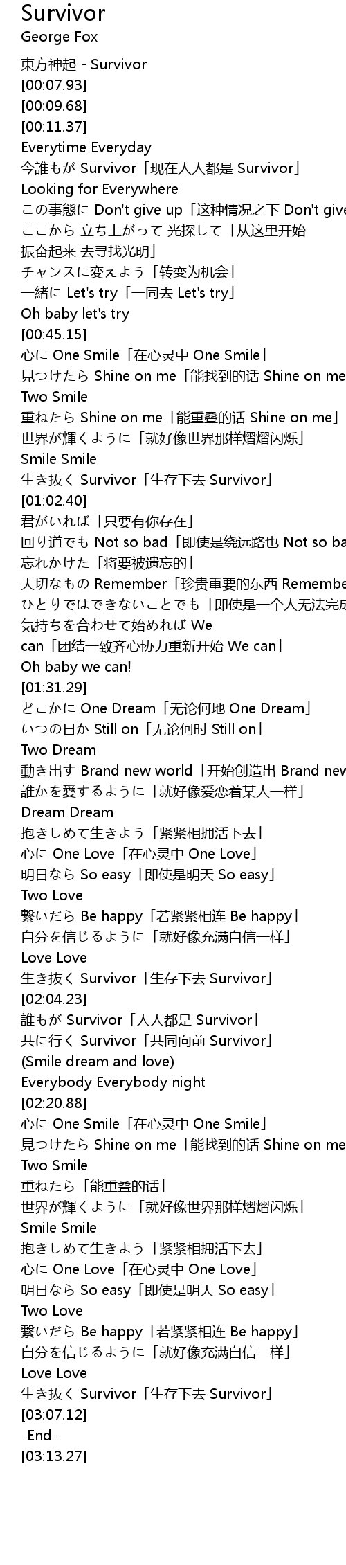 | [01:00.04] | shēng bá Survivor shēng cún xià qù Survivor |