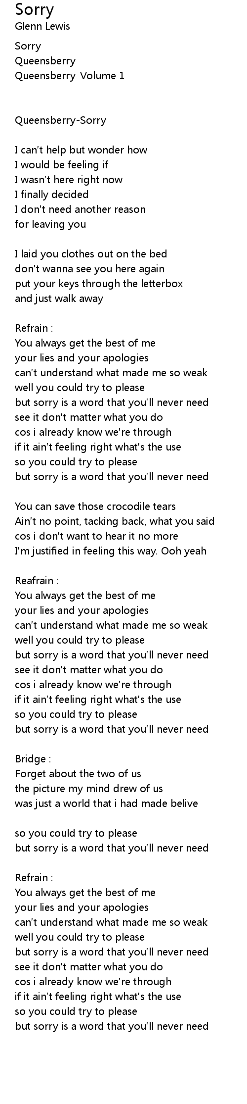 | but sorry is a word that you ll never need | |
