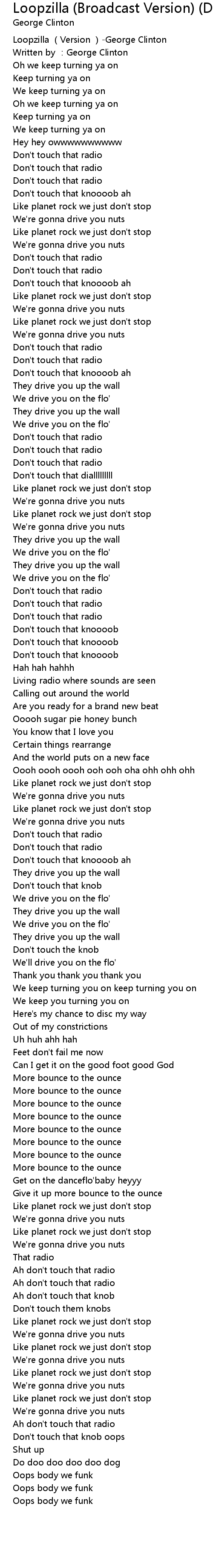 | [00:00.00] | Loopzilla (Version )-George Clinton |