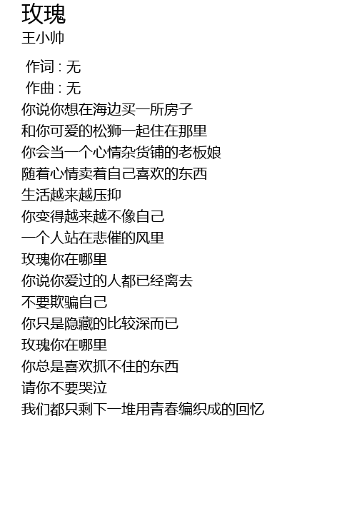 | [01:05.710] | méi guī nǐ zài nǎ lǐ |