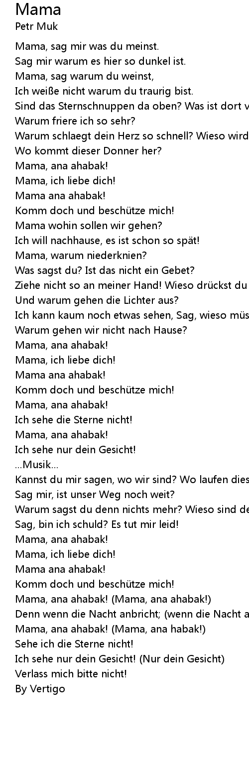 | [00:10.17] | Mama, sag mir was du meinst. |