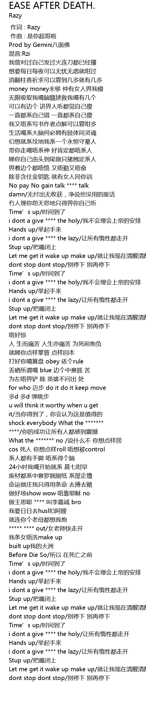 | [02:34.648] | i dont a give the lazy ràng suǒ yǒu duò xìng dōu zǒu kāi |
