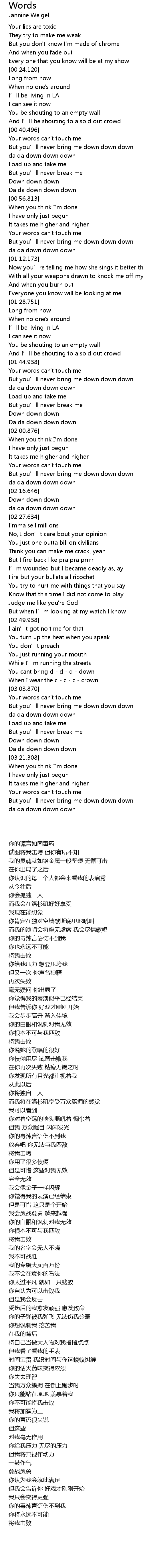 | [02:08.485] | Your words can't touch me |