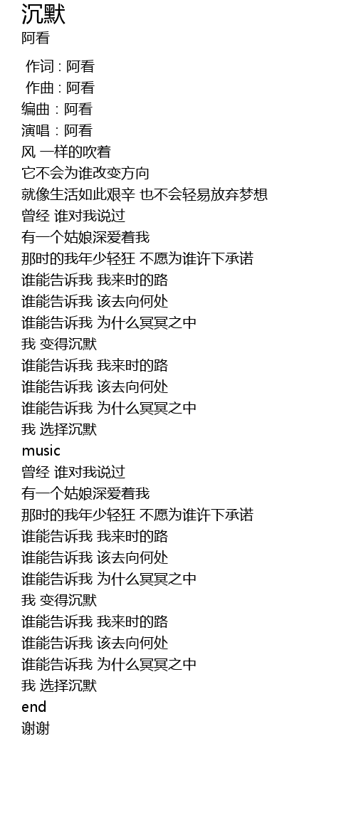 | [01:42.000] | wǒ xuǎn zé chén mò |