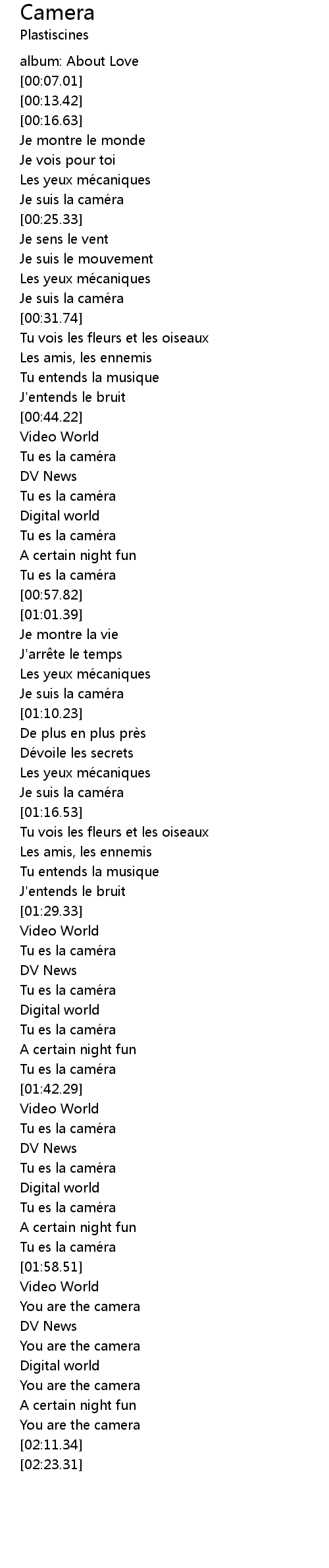 | [01:17.32] | Tu vois les fleurs et les oiseaux |