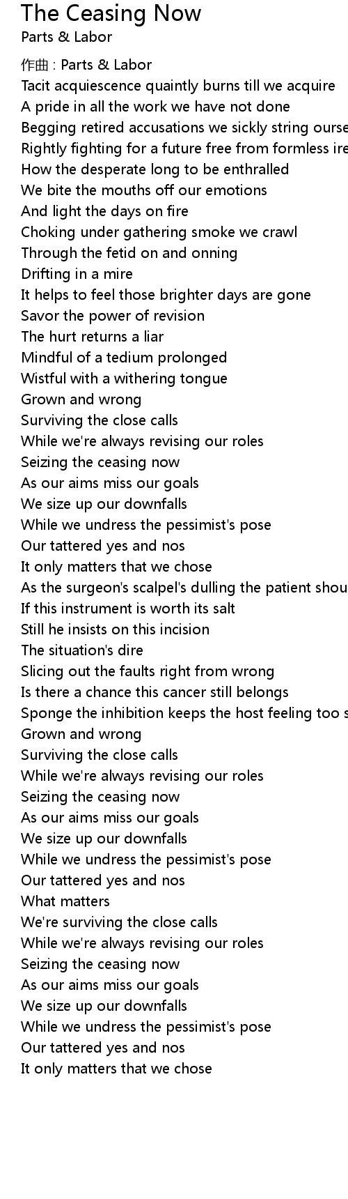 | 歌曲 | The Ceasing Now |