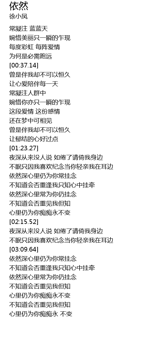 | [03:10.15] | 依然深心里仍为你常挂念 |