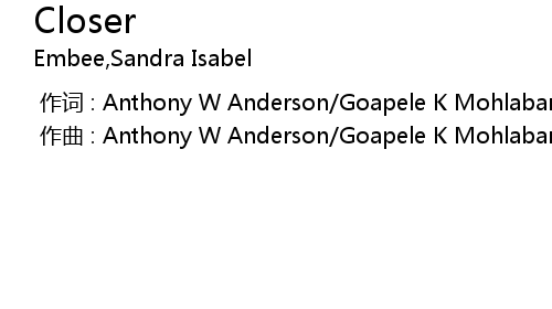 | [00:00.000] | 作曲 : Anthony W Anderson/Goapele K Mohlabane/Michael Louis Aaberg |