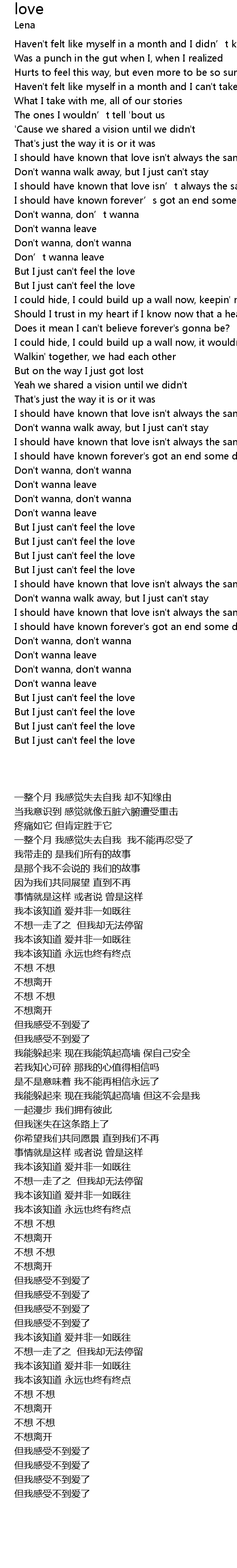 | [00:32.05] | Haven' t felt like myself in a month and I can' t take it no more |