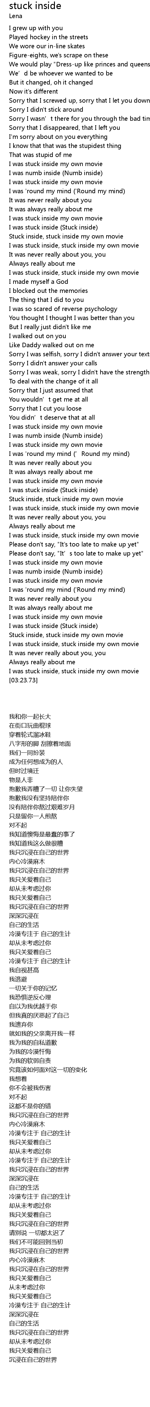 | [03:02.97] | I was stuck inside Stuck inside |