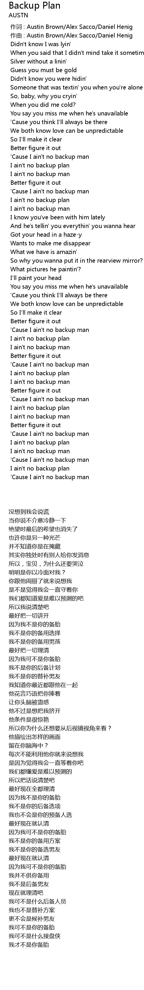| [00:59.483] | 我不是你的后备计划 |