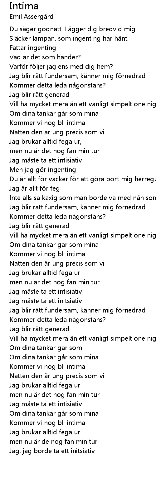 | [01:48] | Vill ha mycket mera än ett vanligt simpelt one night stand |