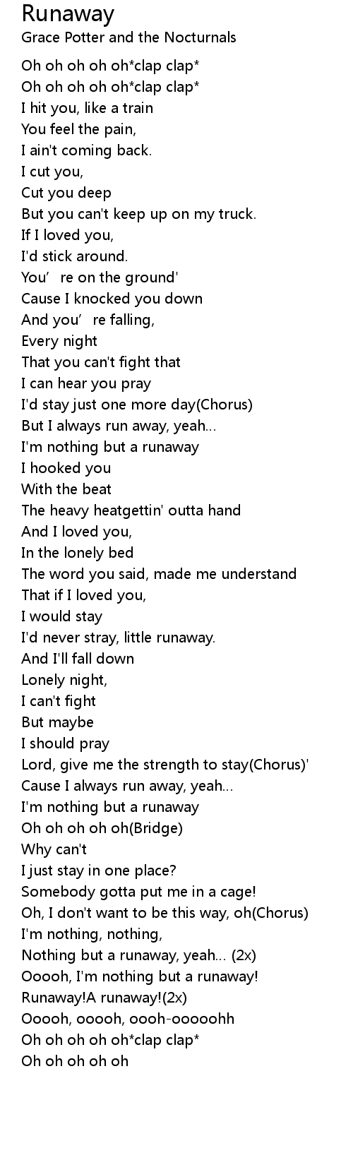 | Nothing but a runaway, yeah… (2x) | |