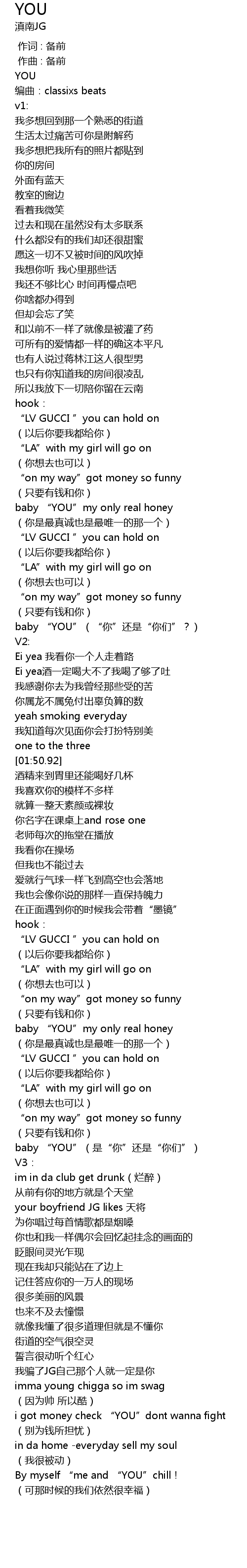 | [01:33.69] | baby “YOU”(“你”还是“你们”?) |