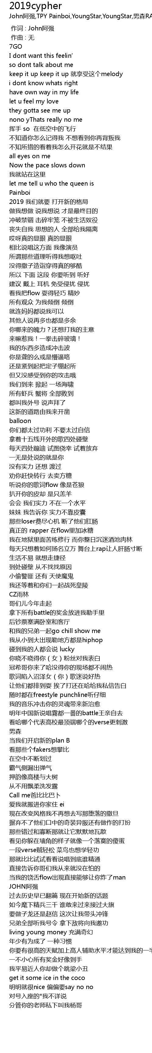 | [02:34.580] | 明年中国新说唱霧都一番的battle王亲自去 |