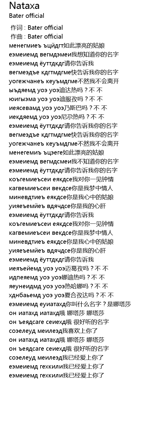 | [02:00.563] | еэмеиемд еуиатахд你叫什么名字?是娜塔莎 |