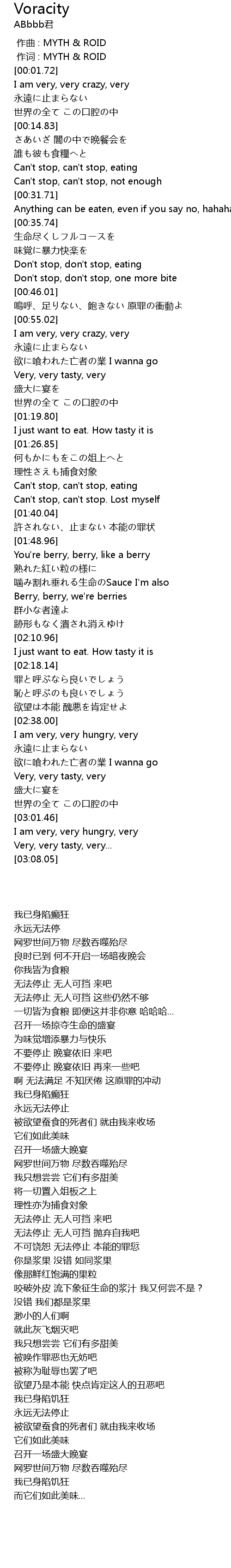 | [01:34.90] | Can' t stop, can' t stop, eating |
