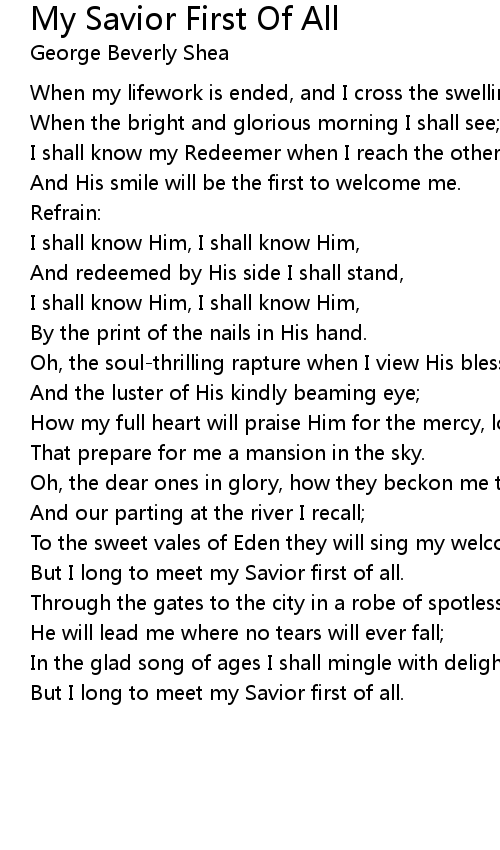 I shall know Him, I shall know Him, |