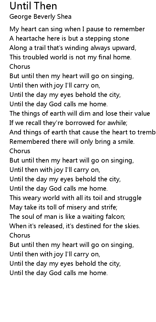 Until then with joy I'll carry on,