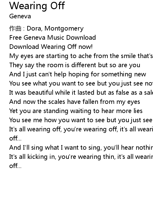 | It' s all wearing off, you' re wearing off, it' s all wearing off, you' re wearing off... | |