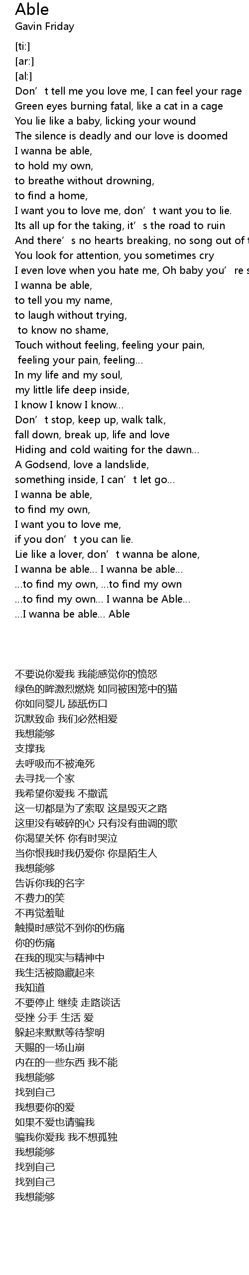 | [04:18.28] | to find my own I wanna be Able |