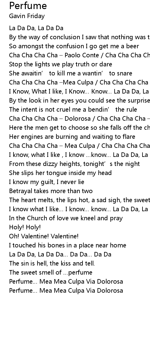 | I Know, What I like, I Know Know La Da Da, La Da Da Perfume | |