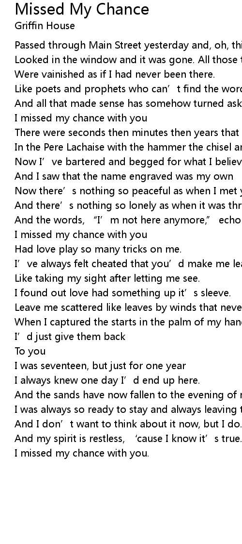 | I missed my chance with you. |