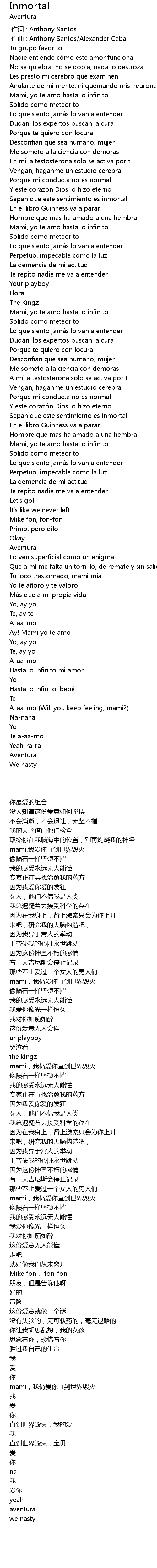 | [00:00.000] | 作词 : Anthony Santos |