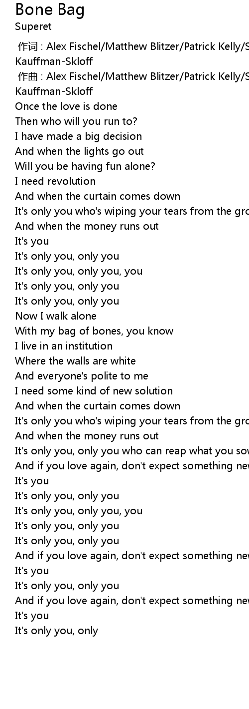 | [00:00.000] | 作词 : Alex Fischel/Matthew Blitzer/Patrick Kelly/Sam Kauffman-Skloff |