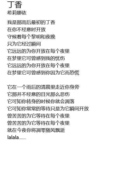 | wǒ shì nà yǔ hòu zuì chū de dīng xiāng | |