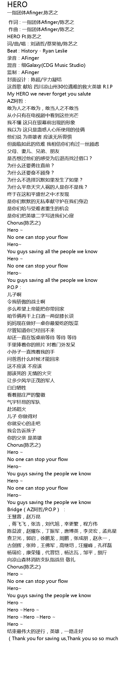 | [00:03.48] | zhè shǒu gē xiàn gěi sì chuān liáng shān zhōu 30 wèi yù nàn de jiù huǒ yīng xióng R. I. P |