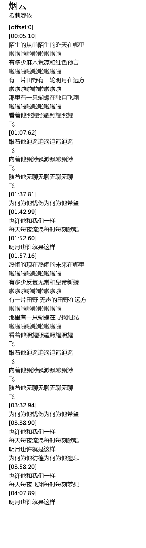 | [03:13.73] | 向着他飘渺飘渺飘渺飘渺 |