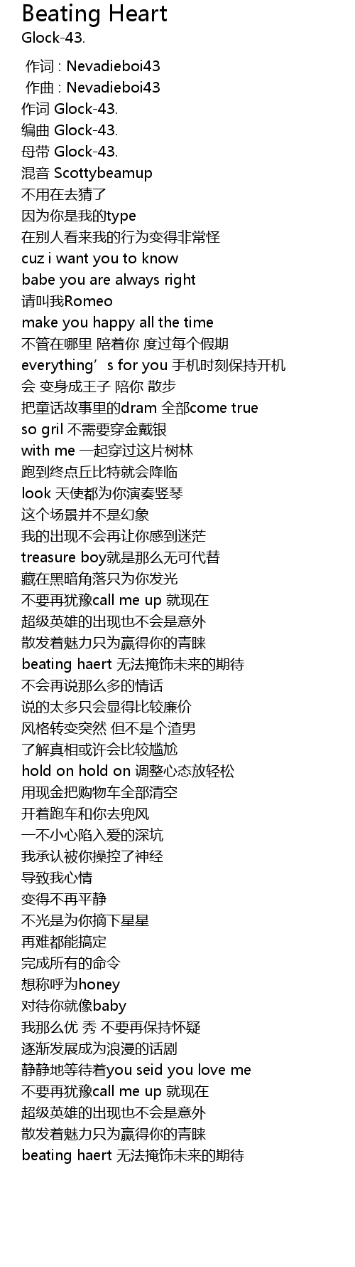 | [01:15.600] | beating haert 无法掩饰未来的期待 |