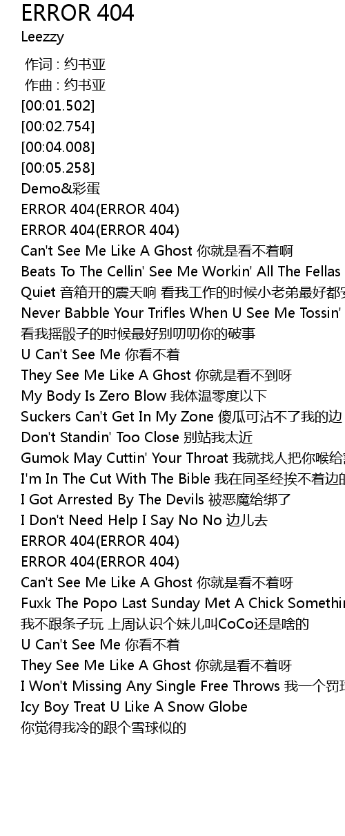 | 歌曲 | ERROR 404 |