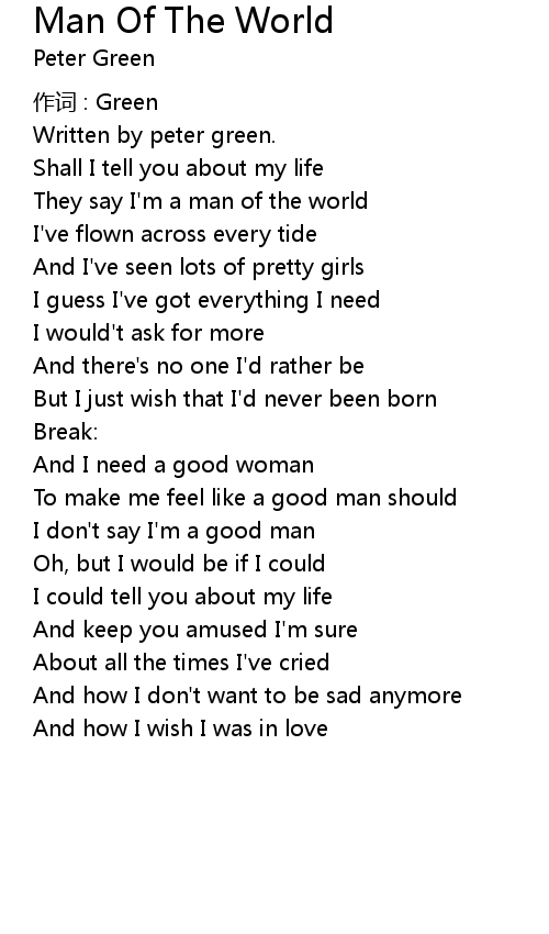 | 歌曲 | Man Of The World |