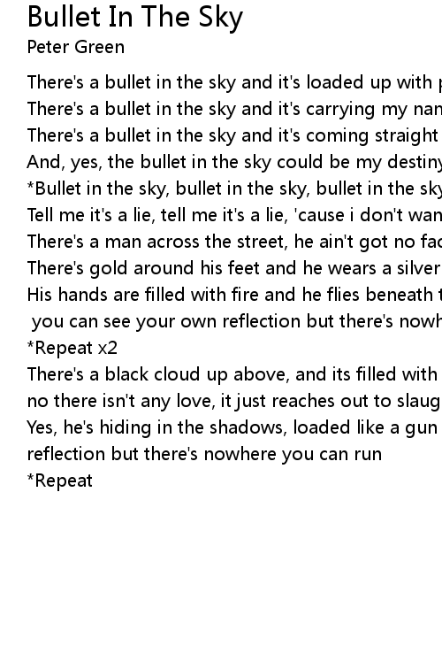 *Bullet in the sky, bullet in the sky, bullet in the sky |