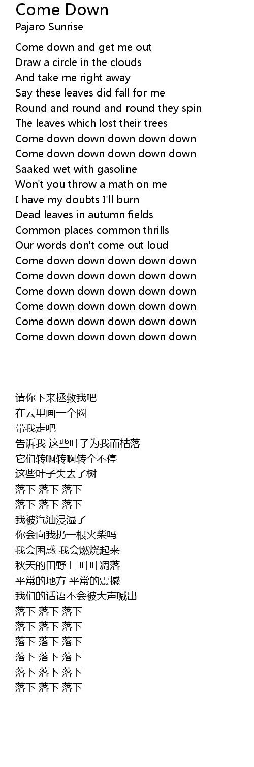 Come down down down down down |
