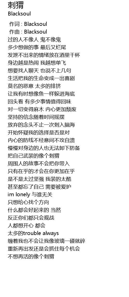 | [00:00.000] | 作词 : Blacksoul |