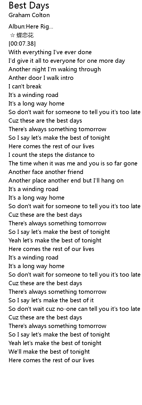 | [00:42.88] | Cuz these are the best days |