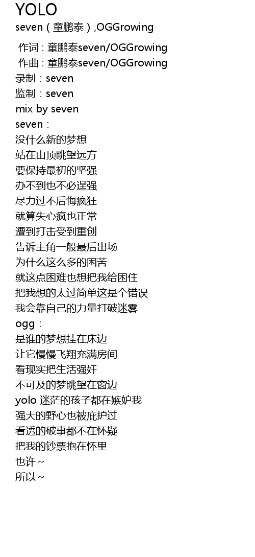| [00:00.000] | 作词 : 童鹏泰seven/OGGrowing |